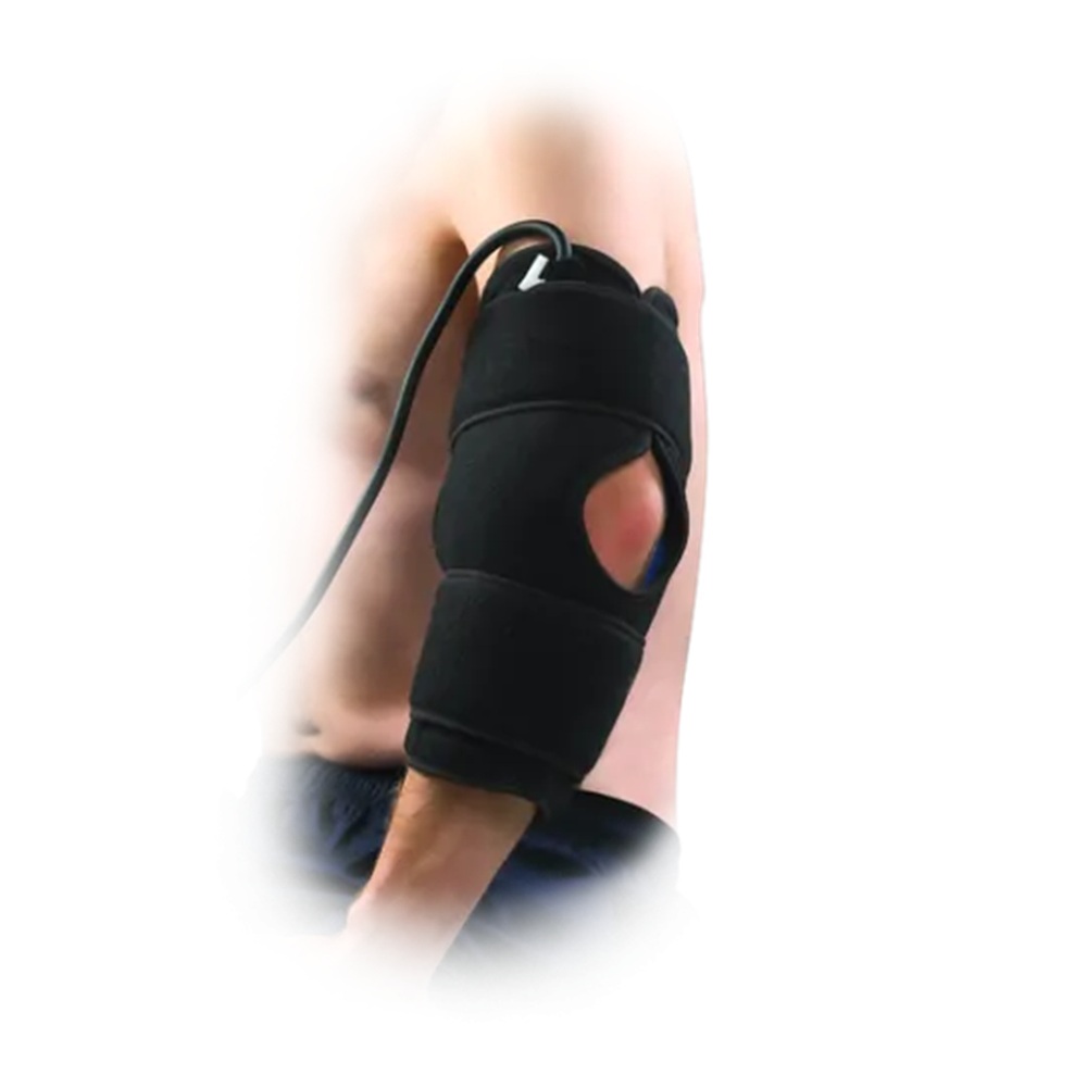 Ο συνδιασμός κρυοθεραπείας και συμπίεσης, χρησιμοποιείται συνήθως για την αντιμετώπιση του πόνου και των φλεγμονών. Ειδικά κατασκευασμένο ώστε να εφαρμόζει ακριβώς στις καμπύλες και την κατασκευή του αγκώνα. Κατάλληλο για παροχή πρώτων βοηθειών, για άμεση ανακούφιση του πόνου και υποχώρηση οιδημάτων, για φλεγμονές και αθλητικές κακώσεις.