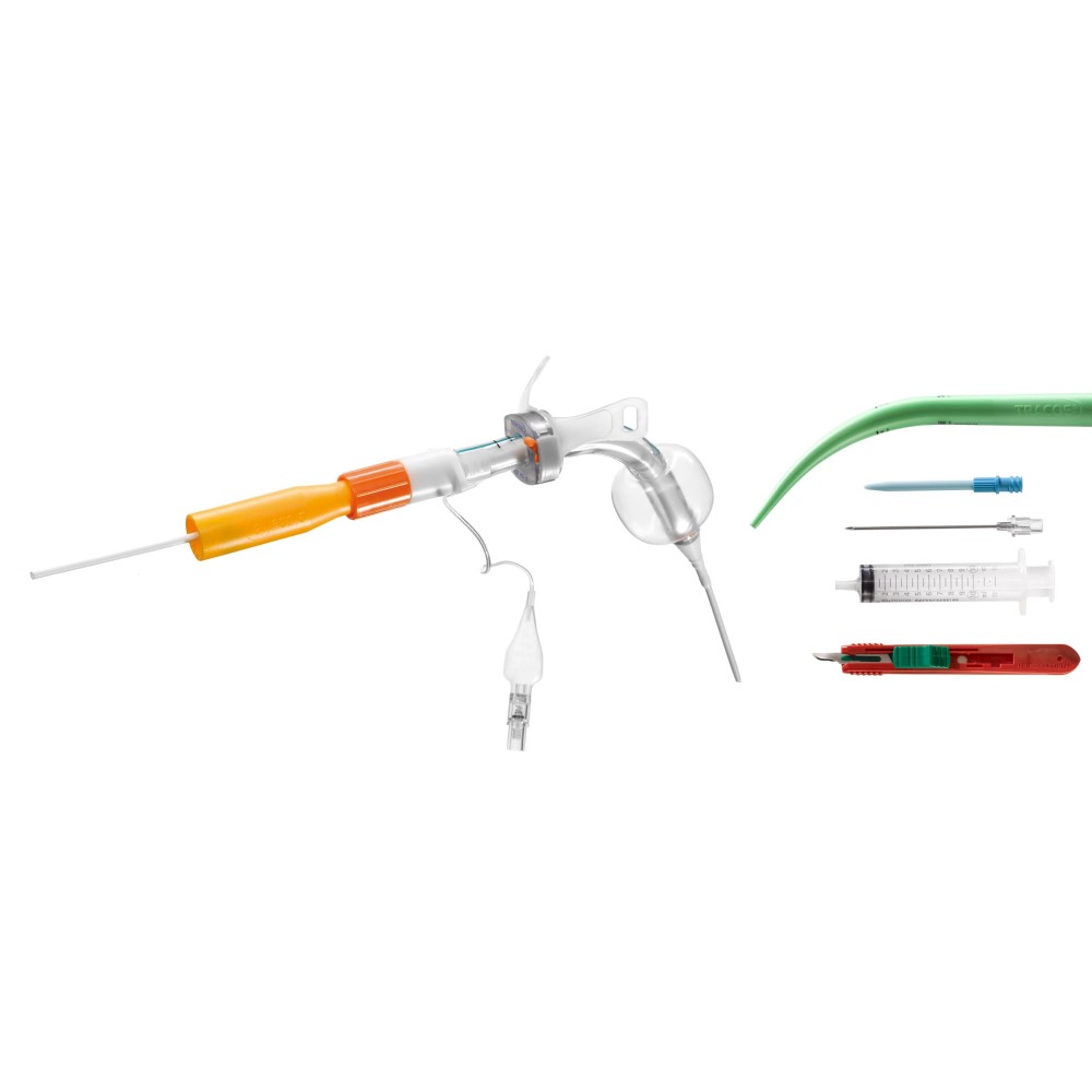Σετ διαδερμικής τραχειοστομίας 420 της Tracoe Γερμανίας, βασισμένο στην τεχνική Ciaglia, με διαστολή ενός σταδίου και ατραυματικό άμεσο εισαγωγέα του τραχειοσωλήνα. Ο τραχειοσωλήνας είναι ήδη τοποθετημένος πάνω στον εισαγωγέα, ο οποίος διαθέτει δακτύλιο πωματισμού για καλύτερη τοποθέτηση και αποφυγή τραυματισμών.